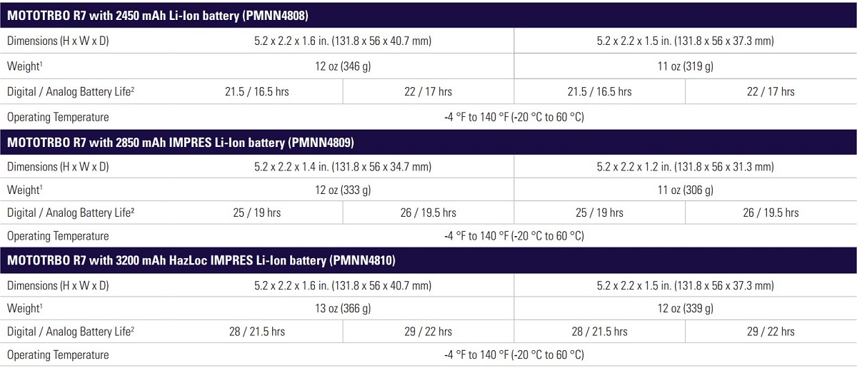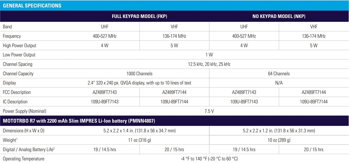 Thông số kỹ thuật Bộ Đàm Motorola R7-LKP